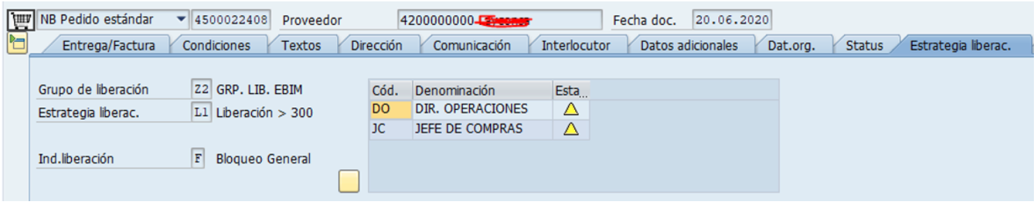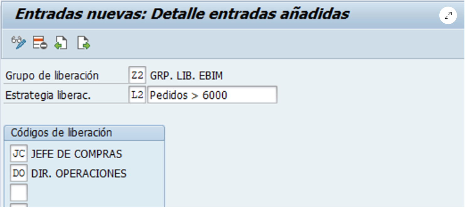 Muchas veces se tiene que en las organizaciones la gestión de compra está restringida por el importe. Cuando el importe supere cierto valor, la gestión de compra requiere pasar por una estrategia de liberación, en la cual debe ser liberada por una serie de personas quienes gestionan la compra; pudiendo ser mi jefe para una primera liberación, y el jefe de mi jefe para la segunda liberación, así sucesivamente.